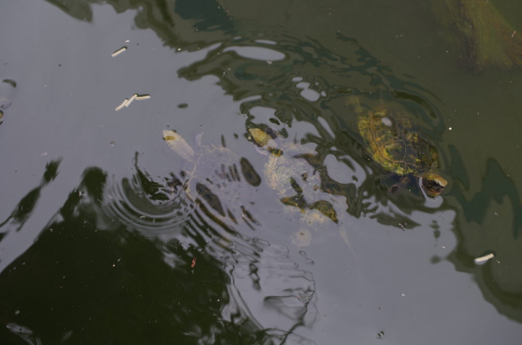 カメがこちらまできて食べてくれました。